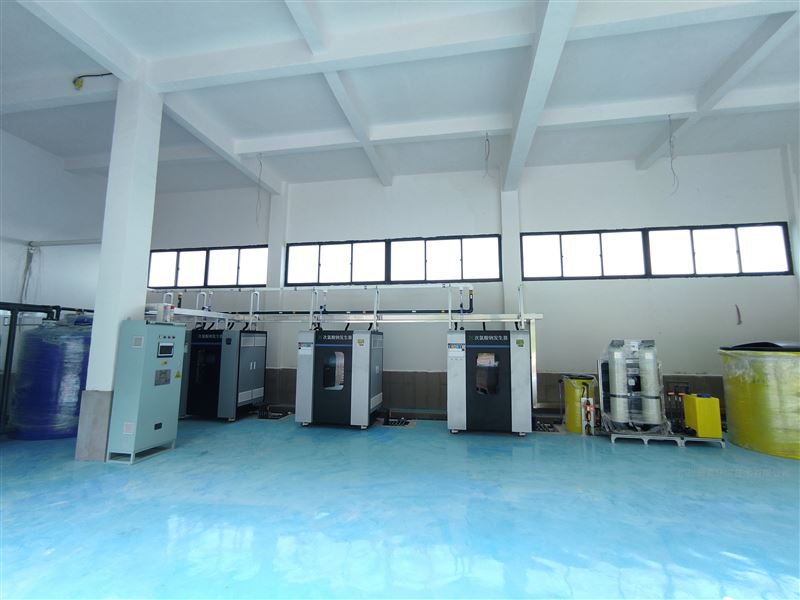 软水系统:常规的自来水都含有一定量的钙镁离子,在电解过程中,钙镁离子会吸收电能,同时产生沉淀物质附着在电极表面增加电能的消耗,降低了电解效率,我司配置专业的软水装置,将自来水软化后使用,可以提高电极寿命和电解效率。