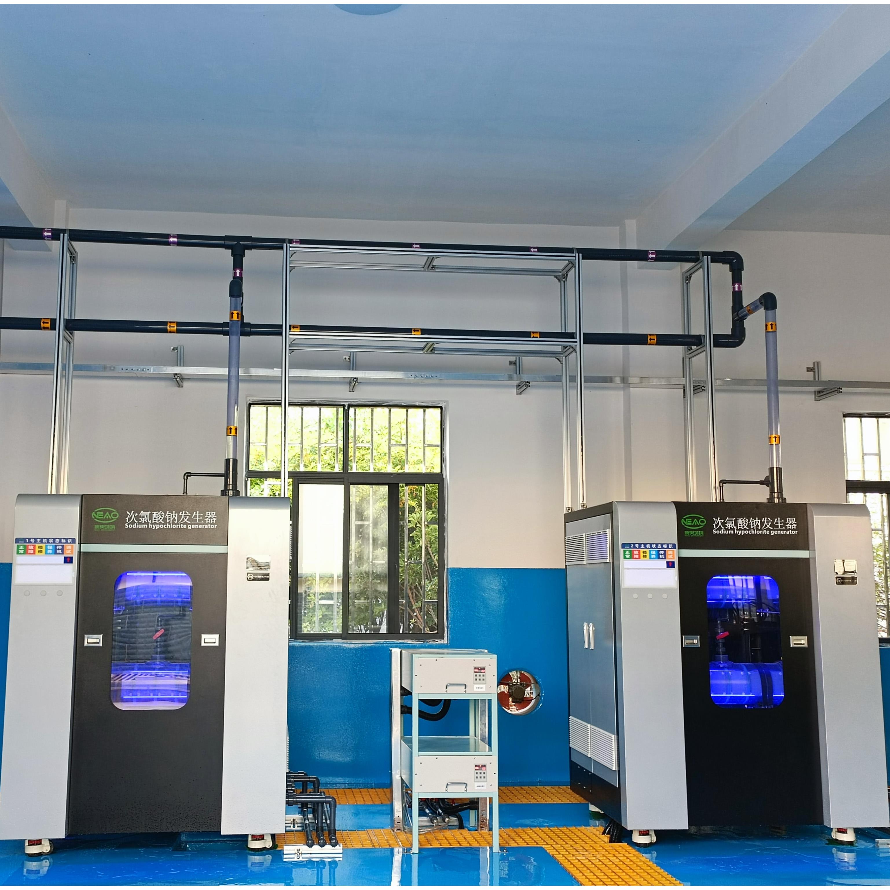 次氯酸钠由电解食盐法制备。我司的次氯酸钠发生器由若干个系统组成,包括软水制备、溶盐系统、盐水精制系统、稀盐水配置系统、次氯酸钠发生、次氯酸钠贮存系统、排氢系统、酸洗系统、次氯酸钠投加及配电控制系统。