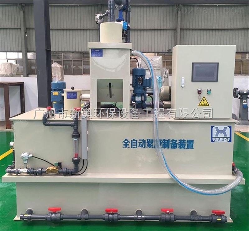 PAM干粉投加机由三腔式箱体、干粉投加系统、溶解系统、熟化系统、储药系统、控制系统、液体投加系统构成。本装置是粉状高分子凝絮剂的自动连续配置及投加系统。干粉絮凝剂从螺旋推进器内进入速溶器内与清水进行预混,被湿润的物料进入配制槽进行搅拌稀释,按要求浓度进行配制;若为液态絮凝剂则由螺杆泵直接投加到配制槽中。配制过程中,进水量在流量计观测下必须相对稳定,从而保证在整个工作过程中,配制溶液浓度不变。具有误差小,调节方便等优点。设备全采用PLC控制,设有手动、自动两种工作方式。