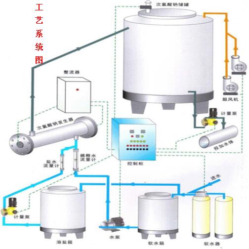 次氯酸钠是强氧化剂和消毒剂,它是通过取源于广泛价廉的工业盐或海水稀溶液,经无隔膜电解而发生的。为确保次氯酸钠质地新鲜和有较高的活性。保证消毒效果,本装置一边发生,一边将发生的次氯酸钠投加使用。它与氯和氯的化合物相比,具有相同的氧化性和消毒作用。